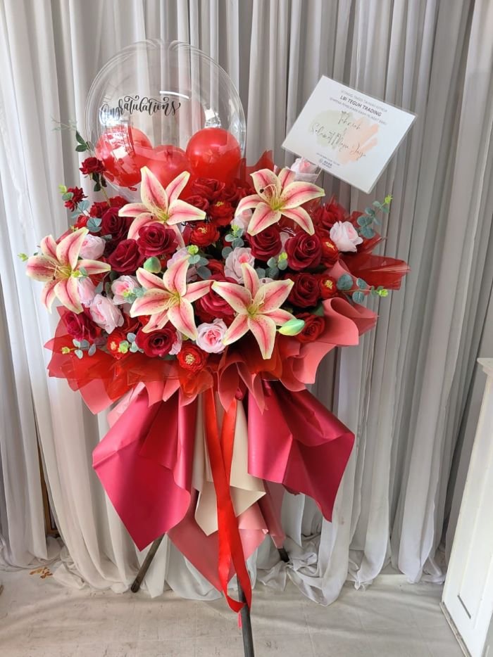 (STAND 5-6 FT) CHOICE OF RED OR PINK ARRANGEMENT