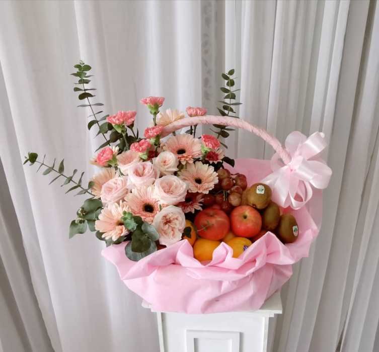 ENGLISH STYLE FLOWER & FRUITS BASKET (LARGE)
