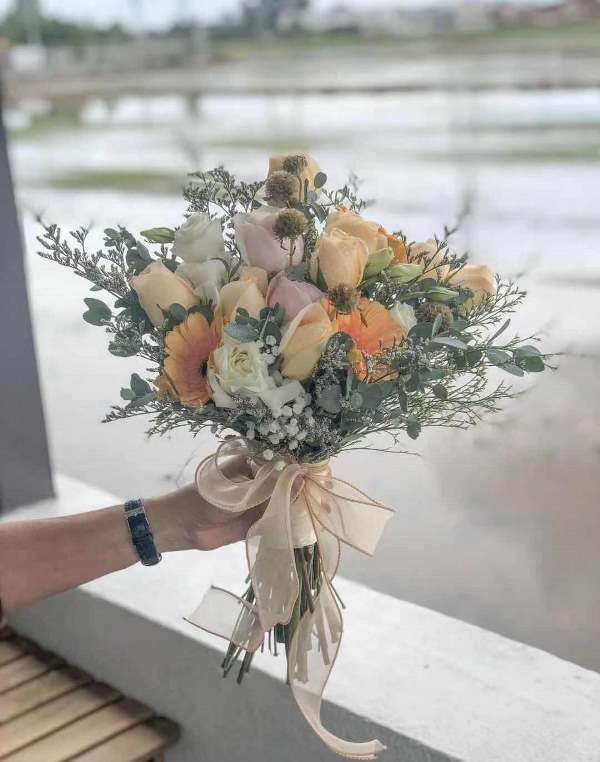 WHITE & CHAMPAGNE COLOUR MIX FLOWER BOUQUET