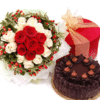 10 roses bouquet (choice of red, pink or champagne rose), large bear & 16 pcs Roche in box
