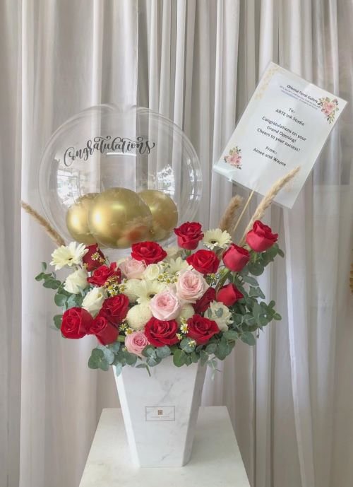 LUXURY FRESH FLOWER WITH HAPPY BIRTHDAY OR CONGRATULATIONS BALLOON