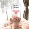 FRESH ROSES, ROCHE, BEAR & BALLOON IN BOX