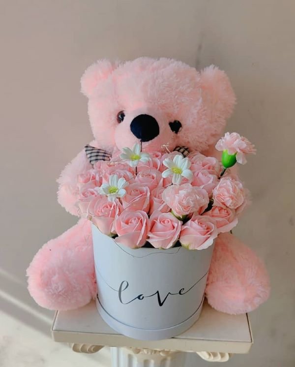 SOFT TOY WITH SOAP FLOWERS IN BOX