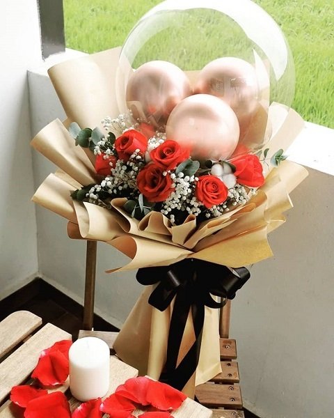 8 ROSE, COTTON FLOWERS & BUBBLE BALLOON