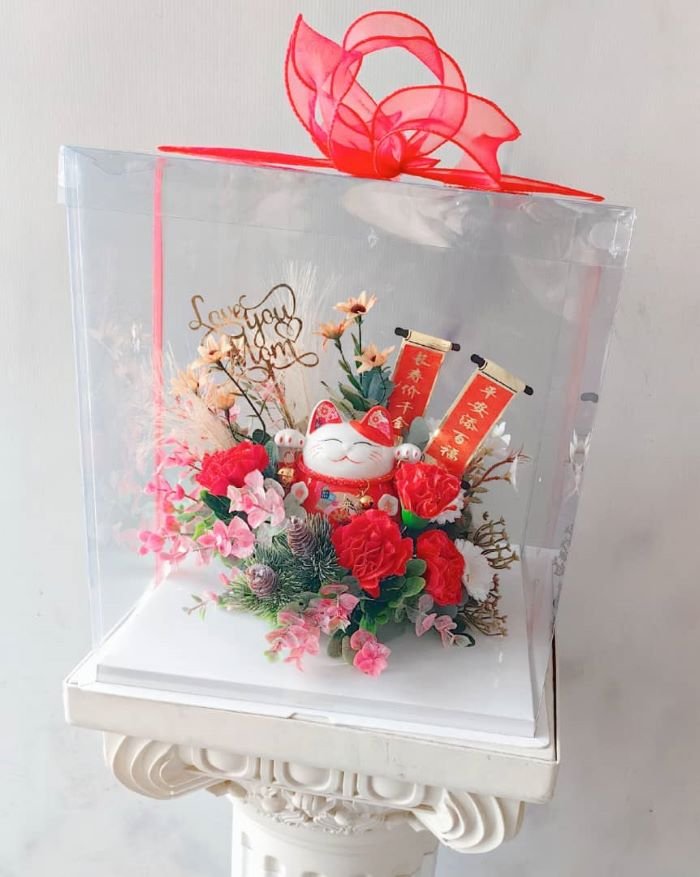 SOAP CARNATION & LUCKY CAT IN BOX 康乃馨香皂花招财猫礼盒