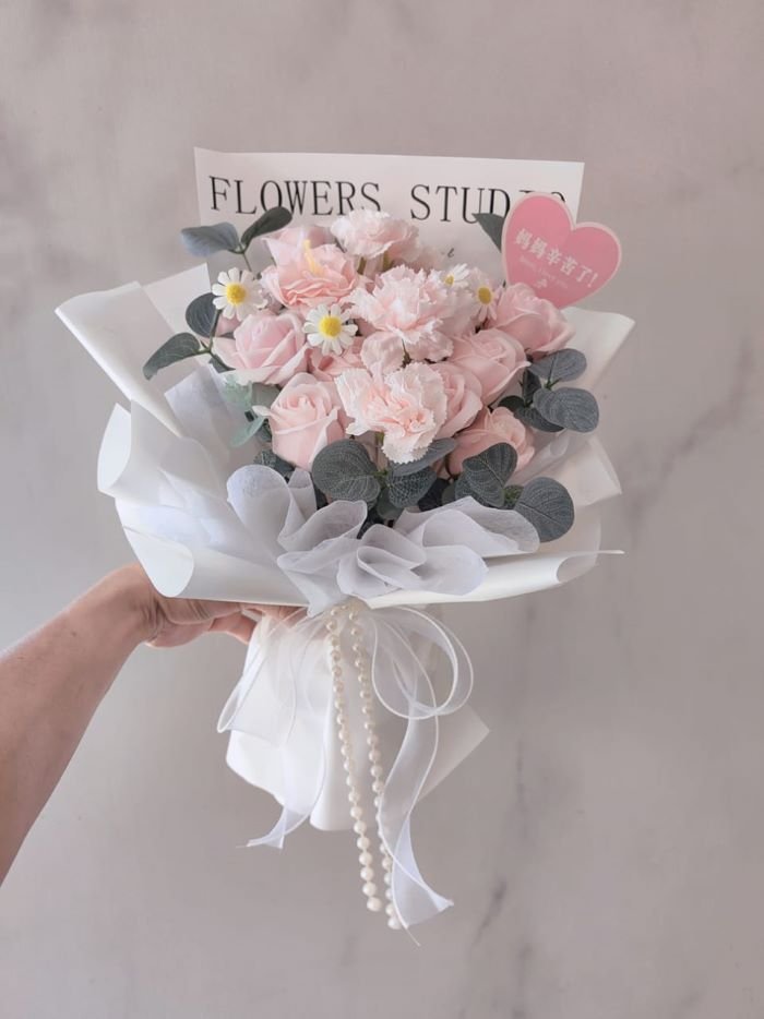 SOAP FLOWER 粉色康乃馨玫瑰香皂花束