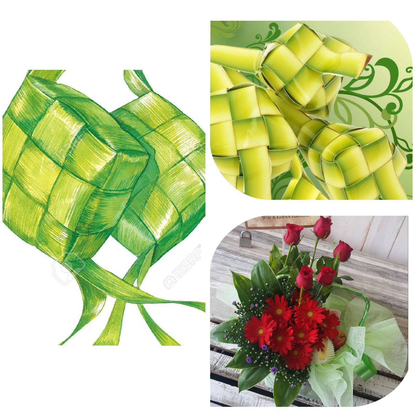 Raya Flower & Fruits Basket with ketupat deco