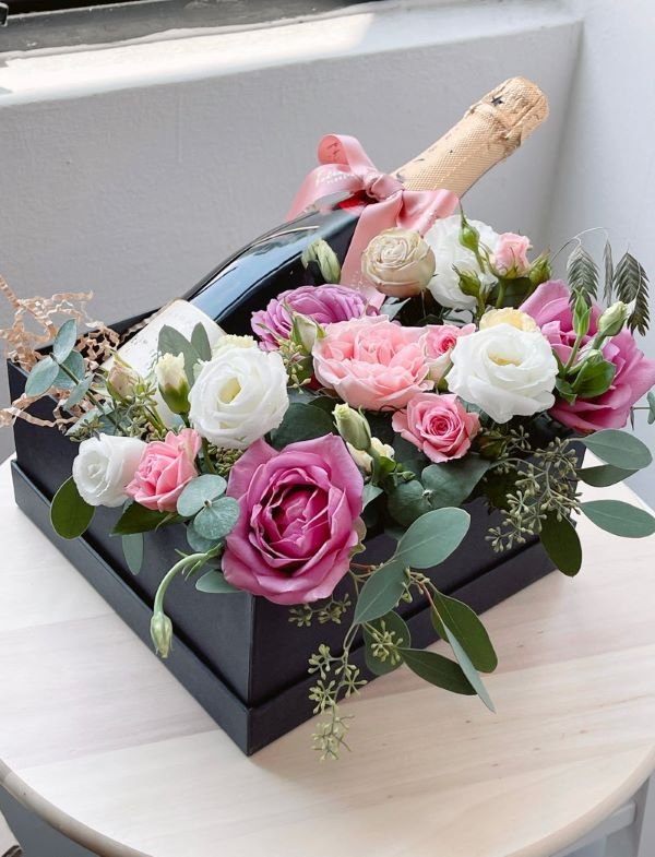 IMPORT WINE WITH PESTAL COLOUR FRESH FLOWERS IN BOX