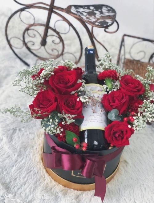 IMPORT WINE & LUXURY FRESH ROSES BOX