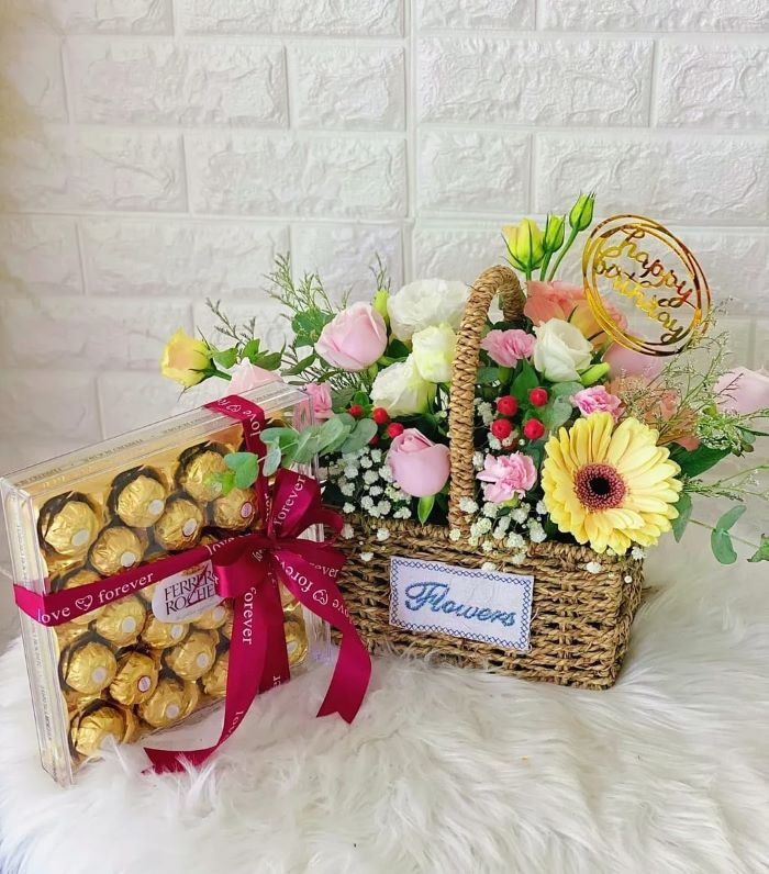 ROCHE BOX AND FRESH FLOWERB BASKET