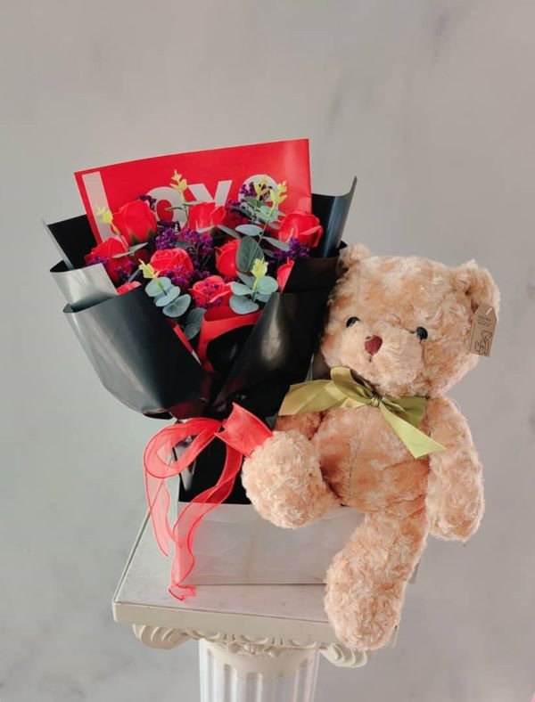 (V16) LOVE BEAR & SOAP FLOWER BOUQUET 香皂花 IN BOX