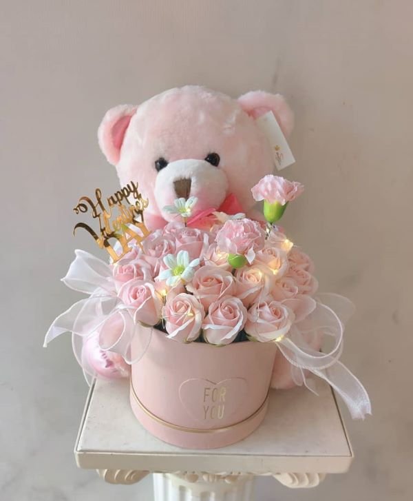 (V21) LOVE BEAR & LED SOAP FLOWER IN BOX 情人熊香皂花抱抱桶
